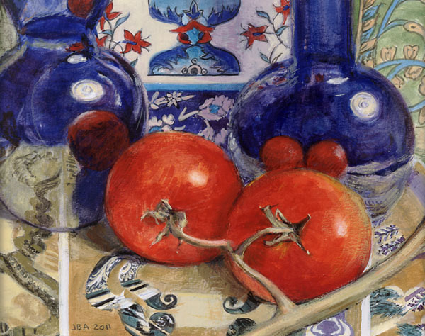 Cherry Tomatoes with Turkish Tile and Cobalt Vases